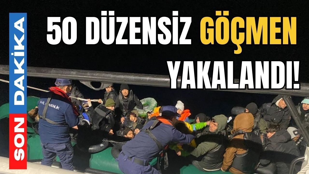 İzmir’in Seferihisar ilçesi açıklarında, lastik botta bulunan 28’i çocuk 50 düzensiz göçmen yakalandı.