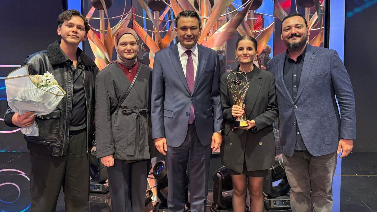 Ödül törenine, öğrenciye destek olmak amacıyla Halkla İlişkiler ve Reklamcılık Bölümü Öğretim Üyesi Prof. Dr. M. Umut Tuncer ile Görsel İletişim Tasarımı Bölümü Araştırma Görevlisi Neslihan Erdem de katıldı.