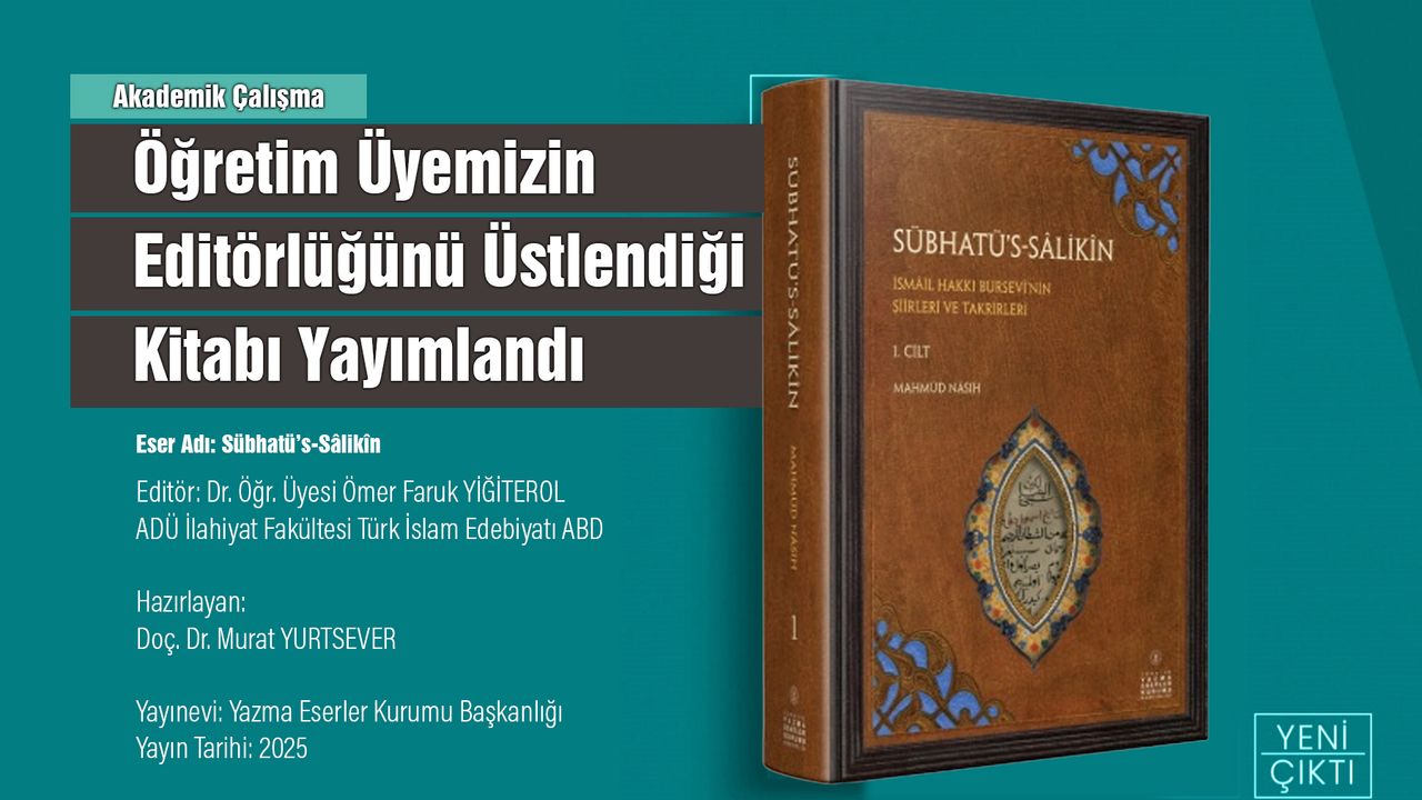 Aydın Adnan Menderes Üniversitesi İlahiyat Fakültesi öğretim üyesi Dr. Öğr. Üyesi Ömer Faruk Yiğitol’un editörlüğünü üstlendiği “Sübhatü’s-Sâlikîn” adlı kitabı yayımlandı.