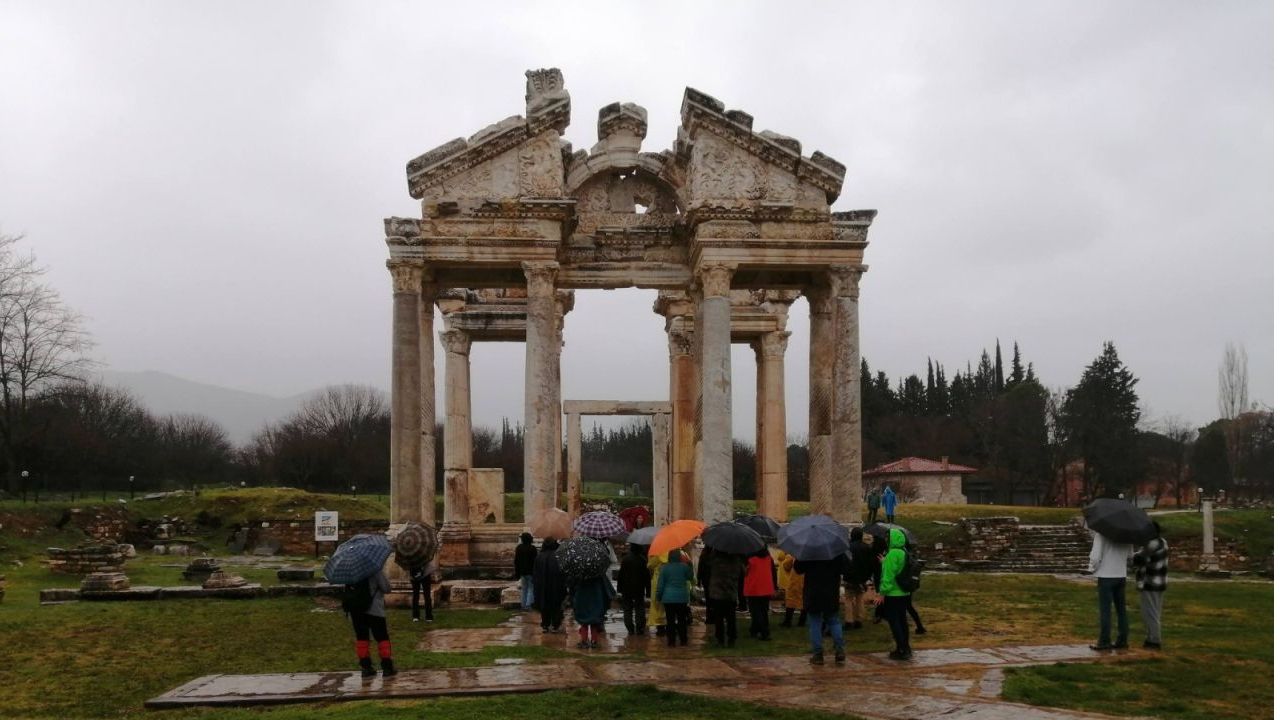 Yağmurun tarihi dokuya kattığı mistik atmosfer eşliğinde gerçekleşen gezide, ziyaretçiler Karacasu’nun gönüllü turizm elçisi ve TUTAP Karacasu İlçe Temsilcisi Bülent Eriklioğlu ile kulüp rehberinin anlatımlarıyla Afrodisias Antik Kenti’ni adım adım keşfetti. Binlerce yıllık geçmişe sahip antik kent, katılımcıların büyük ilgisini çekerken gezi programı ilçe merkezinde devam etti. Kafile tarihi Dandalaz Köprüsü ve Dandalaz Çayı’nı ziyaret ettikten sonra Elmas Restaurant’ta verilen çay-kahve molasıyla dinlendi. Ünlü Karacasu pidelerinin tadan misafirler, ilçe esnafını gezerek yöresel ürünleri yakından inceledi.