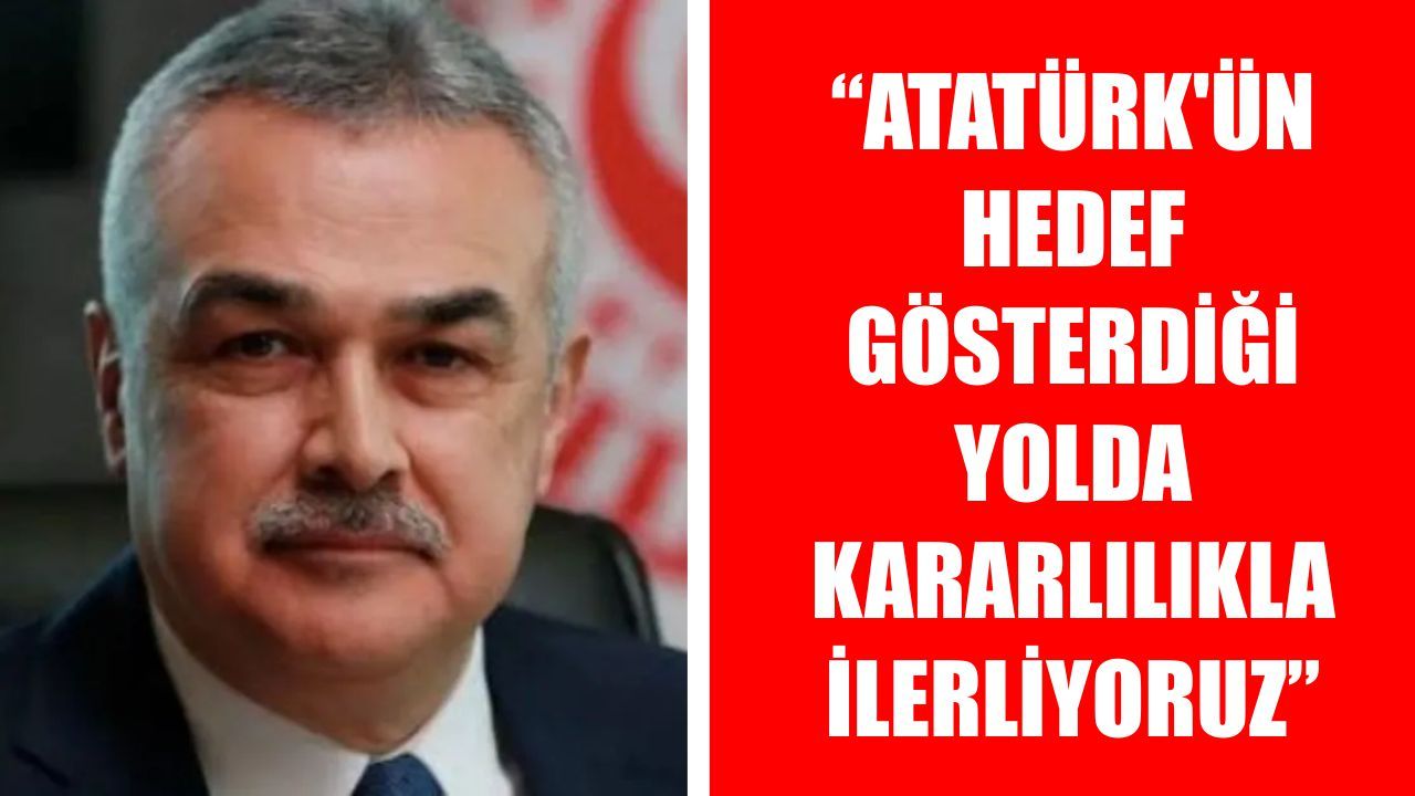 “Bugün Türkiye, Cumhurbaşkanımız Sayın Recep Tayyip Erdoğan’ın liderliğinde, Gazi Mustafa Kemal Atatürk’ün işaret ettiği hedefleri aşan bir millileşme ve kalkınma hamlesi içerisindedir. Ecdadımızdan miras aldığımız bu sorumluluk bilinciyle, Türkiye Yüzyılı vizyonumuz doğrultusunda Cumhuriyetimizin ikinci asrında durmadan, yorulmadan çalışıyoruz.” dedi.