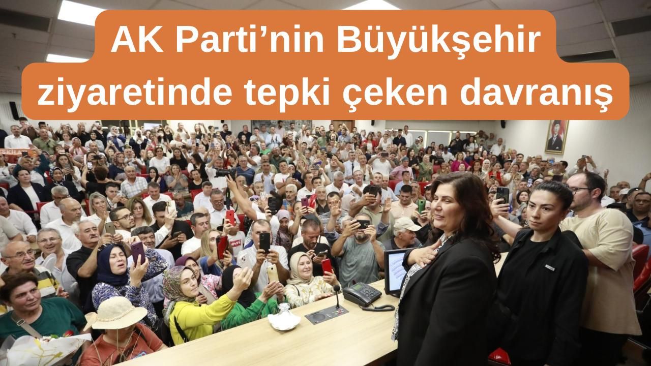 AK Parti kurmayları, teşkilat mensuplarıyla birlikte Aydın Büyükşehir Belediye Başkanı Özlem Çerçioğlu’na hayırlı olsun ziyareti gerçekleştirdi. Çok geniş katılıma sahne olan ziyaret sırasında tepki çeken bir olay yaşandı.
