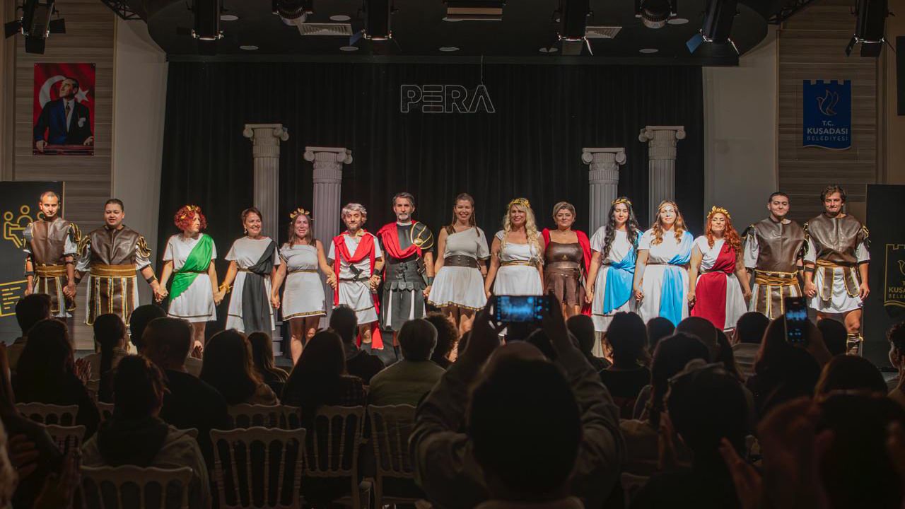 Kuşadası Belediyesi 2024-2025 dönemi yetişkin tiyatro kursiyerleri, bir yıl boyunca aldıkları eğitimin sonucunu sahnede gösterdi. Antik Yunan’ın ünlü yazarı Aristophanes’in “Lysistrata – Kadınların Savaşı” adlı eserinden uyarlanan tek perdelik oyun, Pera Düğün, Organizasyon ve Kültür Merkezi’nde tiyatroseverlerle buluştu. Kadın dayanışması, barış ve toplumsal uzlaşı temalarını hicivle harmanlayan oyun, izleyicilerden büyük alkış aldı.