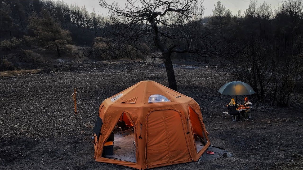 Kamp denildiğinde akla huzurlu bir doğa manzarası, kuş cıvıltıları ve serin ağaç gölgeleri gelirken, bu kez bambaşka bir manzara izleyicilerin karşısına çıkıyor. Sessizliğe bürünmüş, is kokusunun hâkim olduğu ve yaşamın yok olduğu bir ormanda gerçekleştirilen bu kamp deneyimi, izleyicilere orman yangınlarının doğa üzerindeki yıkıcı etkilerini çarpıcı bir şekilde gösteriyor.