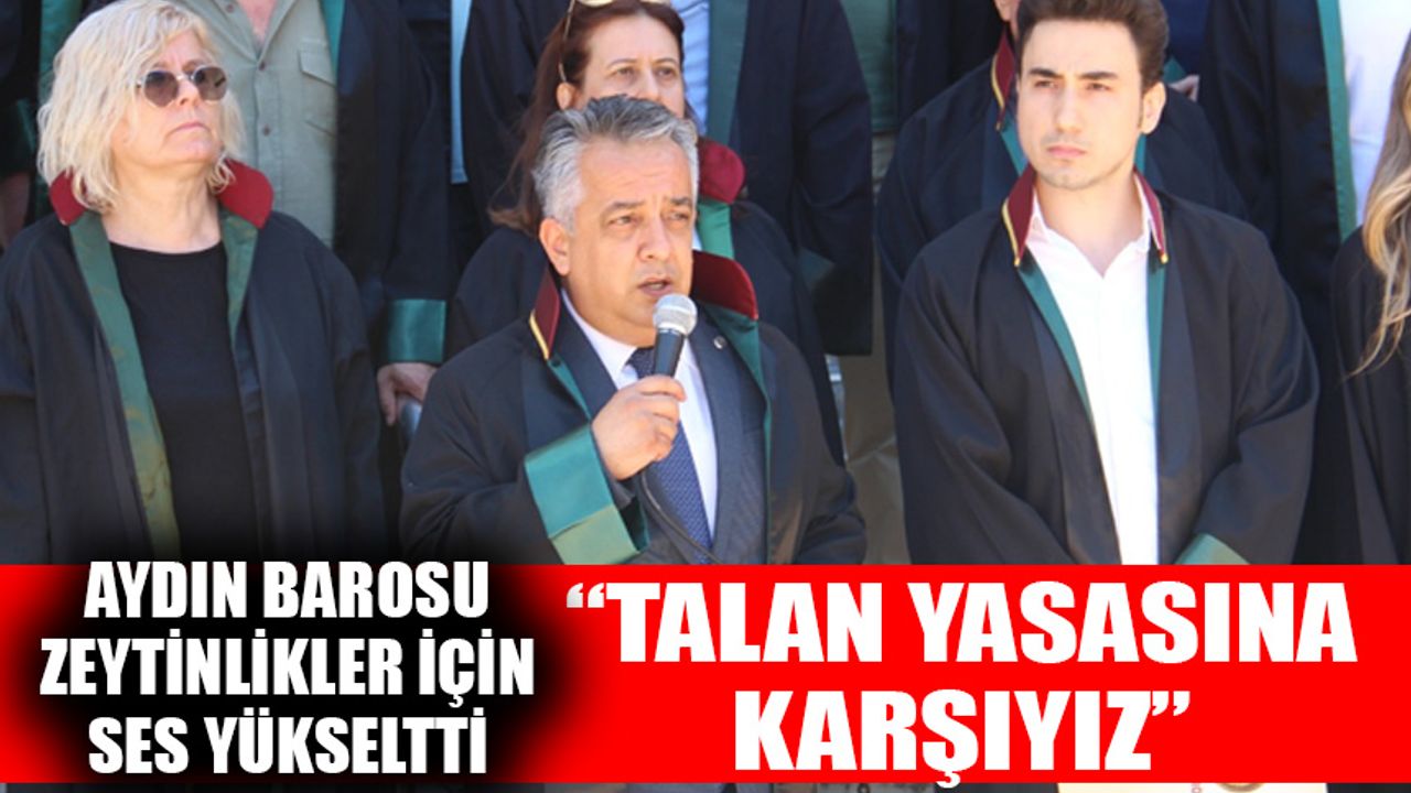 Aydın Barosu Başkanı Utku Devrim Barış Arslan ve baro üyesi bir grup avukat, adliye önünde yaptıkları basın açıklamasında, zeytinlik alanlarda madencilik faaliyetlerine olanak tanıyan torba yasayı protesto etti.