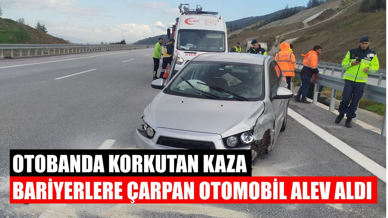 Aydın-Denizli otoyolunda korkulu anlar yaşandı. Bariyerlere çarpan otomobil alev aldı. Edinilen bilgiye göre, Denizli yönünden Aydın istikametine seyir halinde olan M.D. idaresindeki 35 AY 9681 plakalı otomobil, henüz belirlenemeyen bir nedenle kontrolden çıktı. Sürücüsünün direksiyon hakimiyetini kaybeden araç, savrularak bariyerlere çarptı.