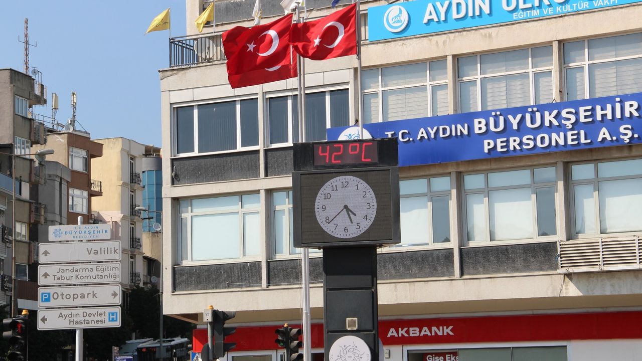 Aydın’da hava sıcaklıkları mevsim normallerinin üzerinde seyrediyor. Atatürk Kent Meydanı’ndaki termometrenin 42 dereceyi gösterdiği şehirde, sıcak hava nedeniyle cadde ve sokaklardaki sakinlik göze çarptı.