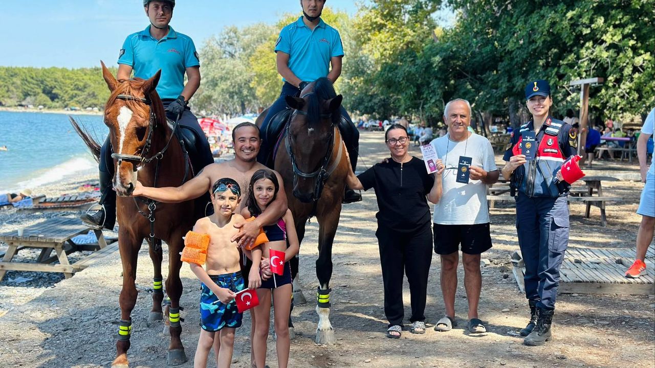Aydın İl Jandarma Komutanlığı Aile İçi Şiddetle Mücadele ve Çocuk Kısım Amirliği, Atlı Jandarma Timi ve Kuşadası Kavaklı Jandarma Karakol Komutanlığı personeli, vatandaşları Kadın Destek Uygulaması (KADES) ve 6284 sayılı kanun hakkında bilgilendirdi.