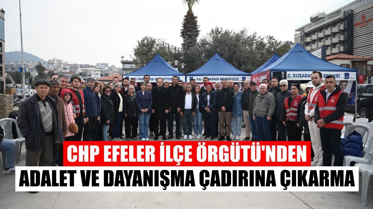 İsmail Cem Dostluk ve Barış Meydanı’nda Başkan Ömer Günel’e destek olmak için kurulan Adalet ve Dayanışma Çadırı’nı her gün binlerce kişi ziyaret ediyor. Başkan Ömer Günel’in uğradığı haksızlığa karşı adaleti arama arzusuyla bir araya gelenler, tepkilerini Adalet ve Dayanışma Çadırı’nda dile getirip, tüm Türkiye’ye duyuruyor. Bu kapsamda haksızlığa karşı tek yürek olunan Adalet ve Dayanışma Çadırına son olarak CHP Efeler İlçe Örgütü çıkarma yaptı. Sabahın erken saatlerinde Adalet ve Dayanışma Çadırına gelen parti üyeleri, Başkan Ömer Günel’in bir an önce özgürlüğüne kavuşmasını istedi.