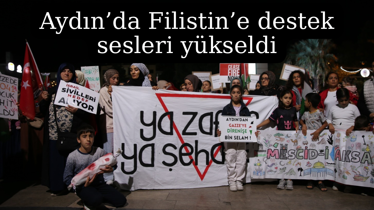 Aydın Sivil Dayanışma Platformu öncülüğünde düzenlenen program kapsamında çok sayıda vatandaş ellerinde Türk ve Filistin bayraklarıyla Atatürk Kent Meydanı'nda toplandı. Bazı vatandaşlar, "İsrail sivilleri hedef alıyor", "Özgür Filistin" yazılı dövizler taşıdı.