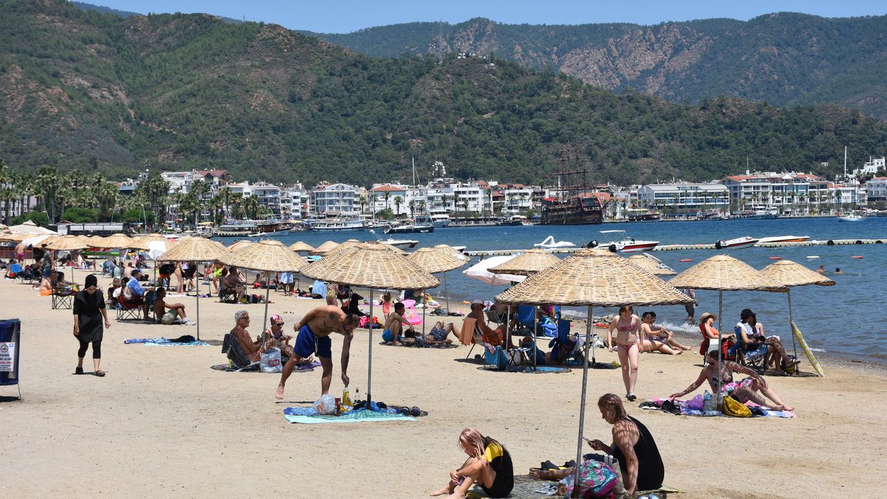 Didim ilçesindeki dünyaca ünlü Altınkum Plajı da sıcak hava nedeniyle serinlemek isteyenlerin adresi oldu.