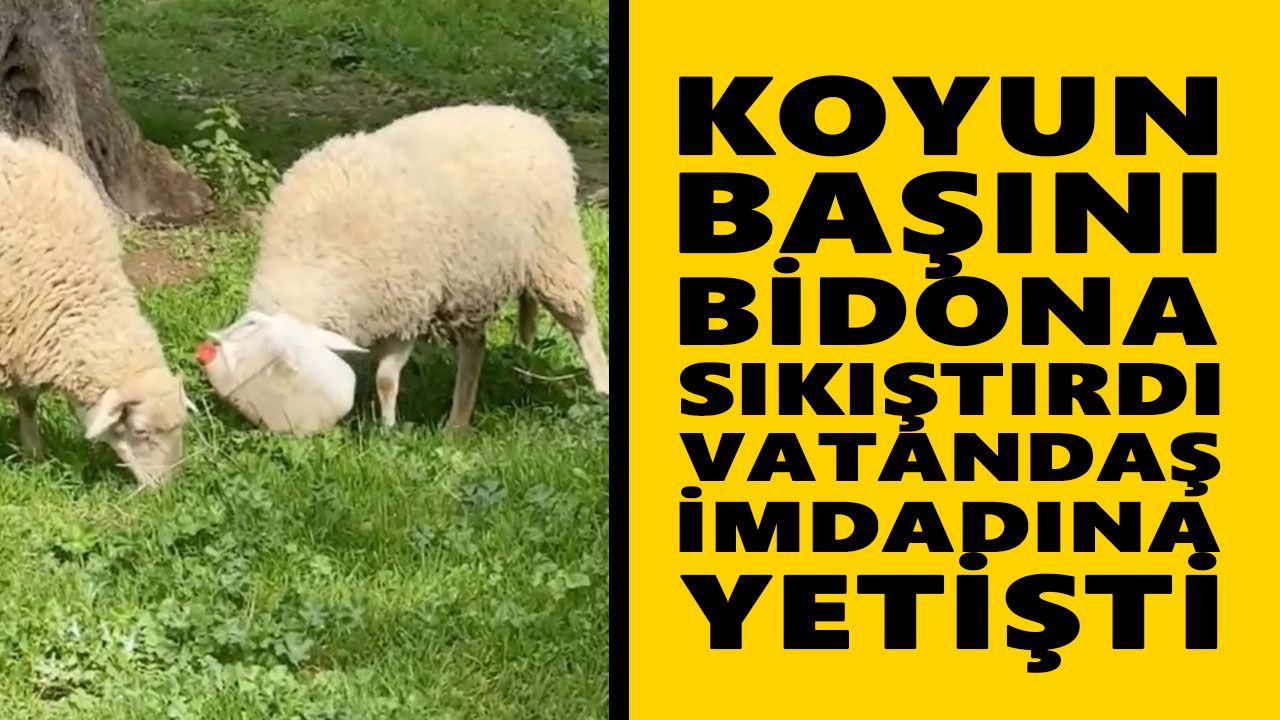 Vatandaşın yardımıyla koyunun başındaki bidon çıkarılırken, yaşanan o anlar cep telefonu kamerasıyla kaydedildi.