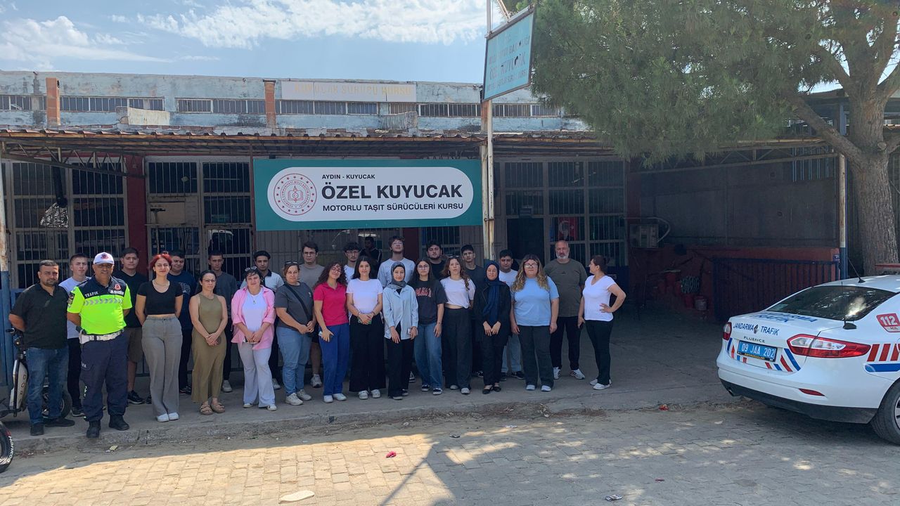 Aydın İl Jandarma Komutanlığı’na bağlı trafik birimleri, güvenli ve huzurlu bir trafik için çalışmalarını sürdürüyor. Bu kapsamda trafik jandarması ekipleri tarafından, , Kuyucak’ta faaliyet gösteren 2 sürücü kursunda eğitim gören 85 sürücü adayına trafik eğitimi verildi.