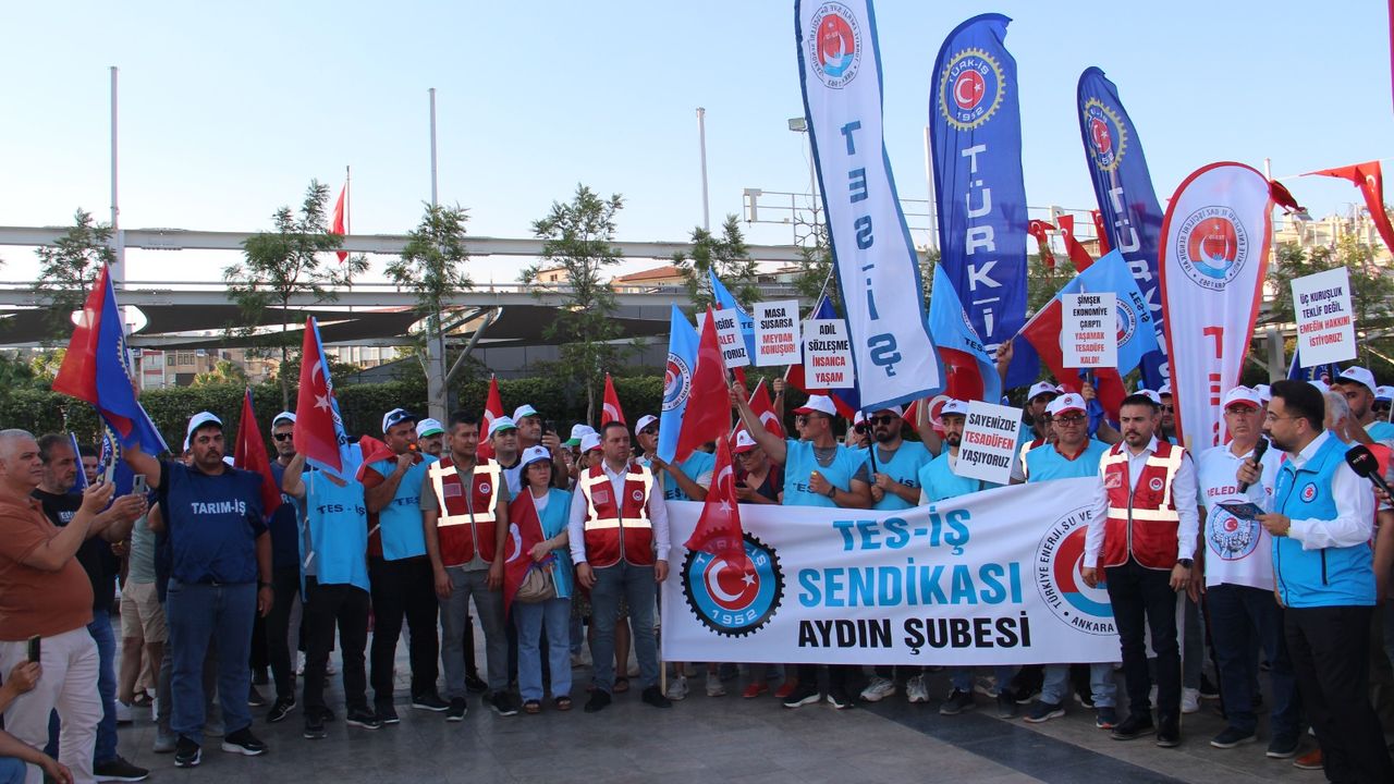 Türk – İş Aydın İl Temsilcisi Kazım Gültekin, yaptığı açıklamada, “Biz kamuda çalışan işçiler olarak; 2025 yılı Toplu İş Sözleşme sürecinde karşılanmayan taleplerimiz, ücret artışımız ve haklarımız için verdiğimiz mücadeleden asla vazgeçmeyeceğimizi her fırsatta dile getirdik. Fakat hükümet geçtiğimiz hafta cuma günü yapılan toplantıda bizlere yine geçim şartlarına uygun olan, kabul edilebilecek bir teklif sunmamıştır. Hatta öyle bir teklif ki işçinin emeği adeta yok sayılmıştır. Bu ülke hepimizin ve biz ülkemize milletimize hizmet ediyoruz. Siz bunu unuttunuz bunu! Biz ona üzüldük” dedi.