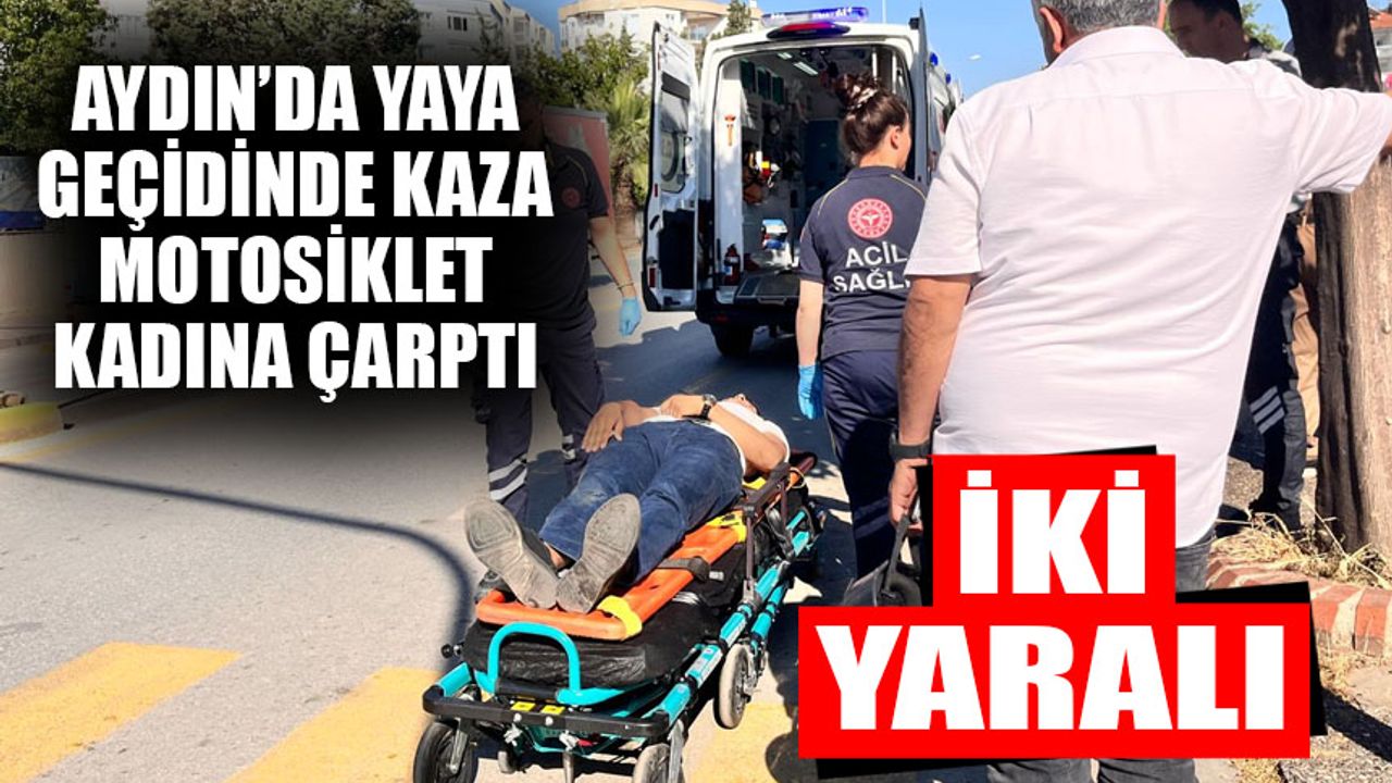 Edinilen bilgilere göre, Aydın Gençlik ve Spor İl Müdürlüğü önündeki yaya geçidinden karşıya geçmeye çalışan A.B. isimli kadına, 09 AER 514 plakalı motosikleti kullanan E.E. isimli genç çarptı. Çarpmanın etkisiyle motosikletli genç ve yaya kadın yere savrularak yaralandı.