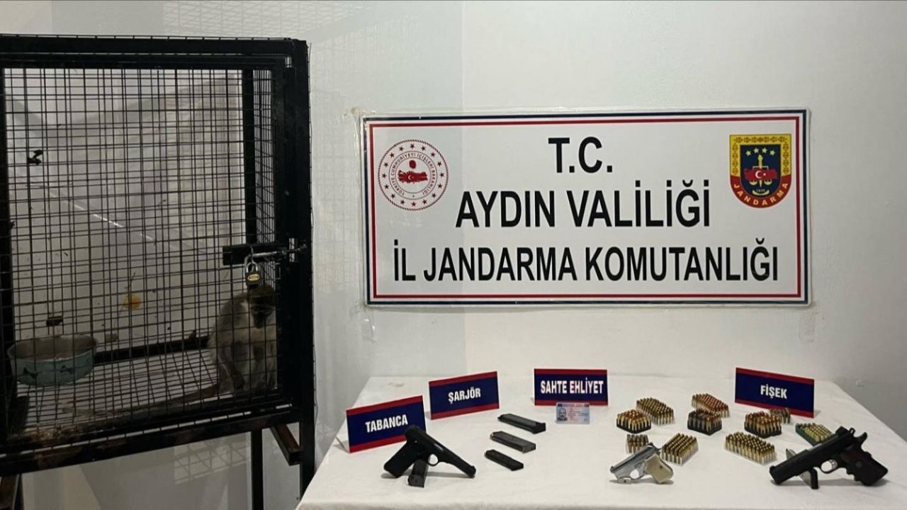 Aydın İl Jandarma Komutanlığı’ndan konu ile ilgili olarak yapılan açıklamada; “Aydın İl Jandarma Komutanlığı Kuşadası İlçe Jandarma Komutanlığı ekiplerince yürütülen çalışmalar kapsamında, İ.Ö. isimli şahsın ikametinde ruhsatsız silah bulundurduğu, silah imalatı ve ticareti yaptığı tespit edildi. 03 Şubat 2026 günü şüpheli şahsın evinde yapılan aramada; 1 adet Vervet maymunu, 3 adet ruhsatsız tabanca, 6 adet şarjör, 383 adet çeşitli çaplarda fişek, 1 adet başka bir şahsa ait kimlik bilgilerini içeren sahte sürücü belgesi ele geçirildi. Olayla ilgili olarak Cumhuriyet Savcısına bilgi verilmiş, alınan talimatlar doğrultusunda İ.Ö. isimli şahıs gözaltına alınarak Kuşadası Cumhuriyet Başsavcılığında hazır edilmek üzere adli tahkikata başlatıldı. Ele geçirilen Vervet maymunu ise gerekli idari işlemlerin yapılması amacıyla Doğa Koruma ve Milli Parklar Genel Müdürlüğü ekiplerine teslim edildi” ifadeleri kullanıldı.