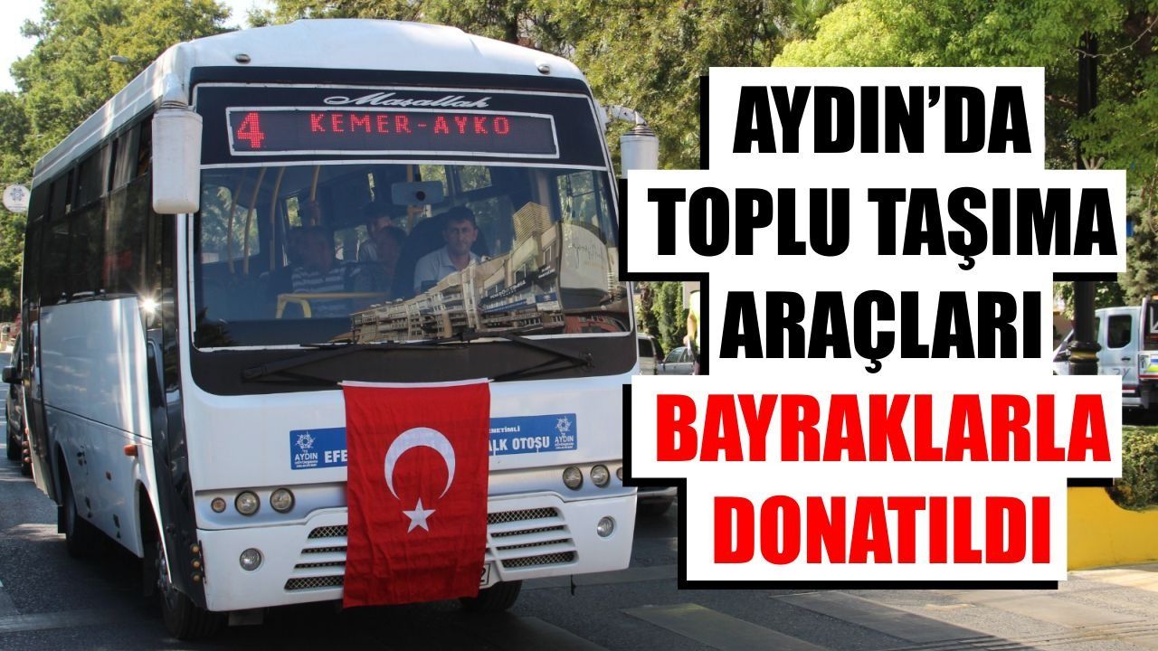 Toplu taşıma araçlarında da her millî gün ve bayramda uygulanan gelenek bozulmadı. Aydın Büyükşehir Belediyesi’nin sarı otobüsleri ile Efeler Şehiriçi Özel Halk Otobüsleri Kooperatifi bünyesinde çalışan otobüs ve midibüsler Türk bayraklarıyla donatıldı. Ay yıldızlı bayraklar güzel görüntü oluşturdu.