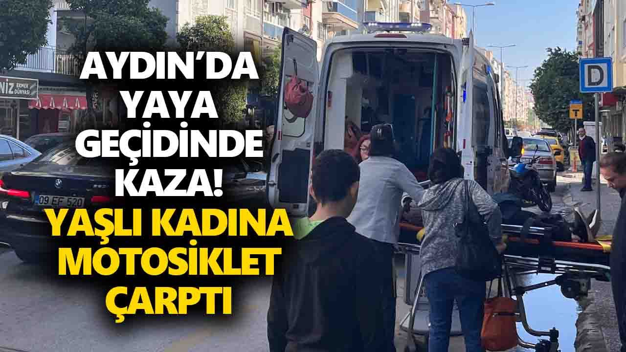 Aydın’ın Efeler ilçesinde meydana gelen kazada, yaya geçidinden karşıya geçmek isteyen yaşlı kadına motosiklet çarptı.