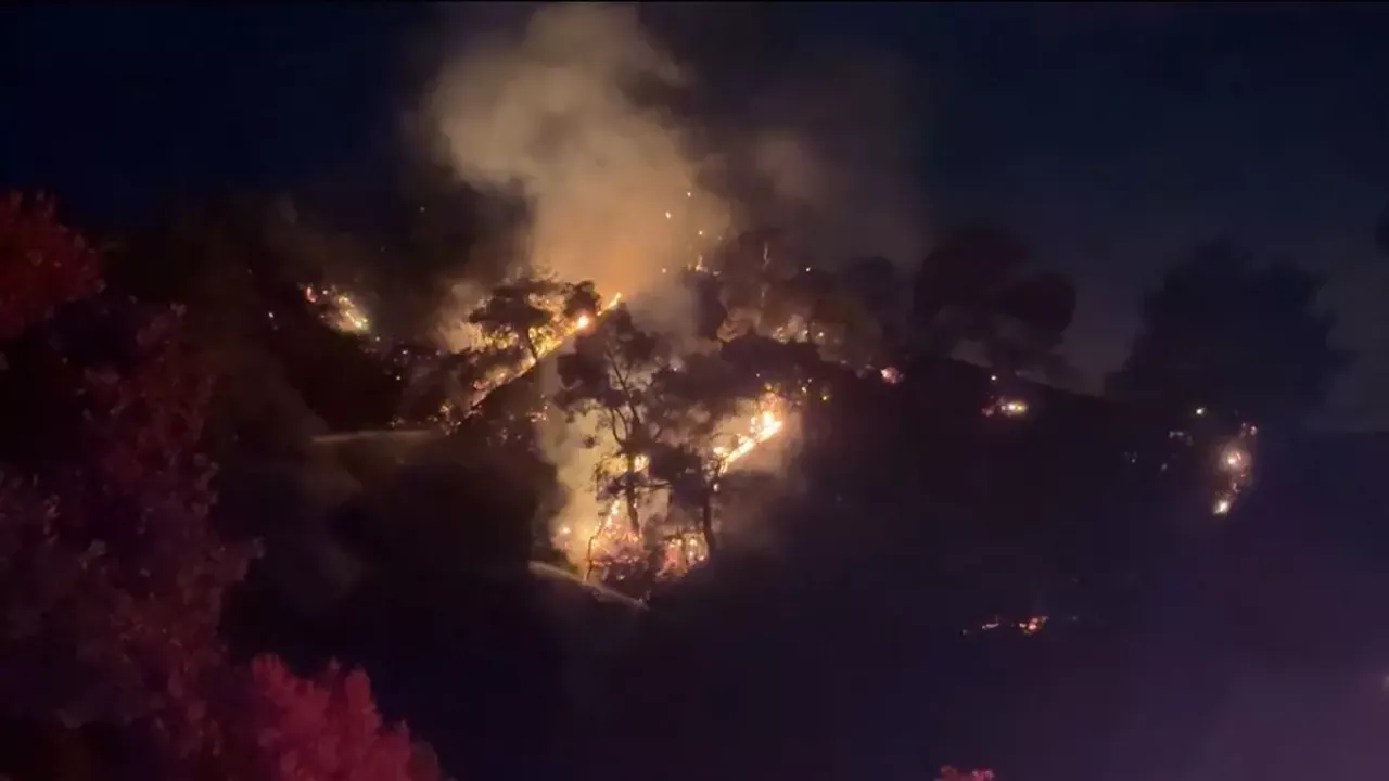Pınardere Mahallesi'ndeki zeytinlikte henüz belirlenemeyen nedenle yangın başladı.