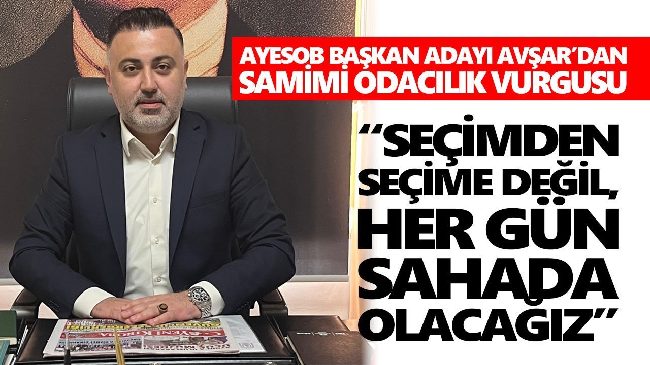 Avşar, başkan seçildiğinde ilk işinin sokağa inmek olduğunu söyleyerek şu ifadeleri kullandı, “Amacımız, samimi oda, samimi hizmeti getirmek. Bugüne kadar yapılan işlerden Allah razı olsun, biz yapılmayana talip olduk. İnşallah samimi odacılığı 3 Mayıs’ta başlatacağız. Bizim ilk yapacağımız iş sokağa çıkmak olacak. Oda başkanlarımızla sahaya çıkacağız. Çünkü bizim gördüğümüz, esnaf sahipsiz kalmış. Esnaf, birlik başkanını görmüyor. Biz tamamen sorunları kaynağından, esnafın kendisinden öğrenerek, çözüm üreteceğiz. Biz ilk yapacağımız bu olacak. Sokağa çıkmak olacak. Makamda oturarak sorunların gelmesini beklemeyeceğiz, sorunlara doğru yürüyeceğiz. Sorunlar var diyerek şikayetçi olmayacağız, sorunları muhataplarına ileterek çözüm sağlayacağız.”
