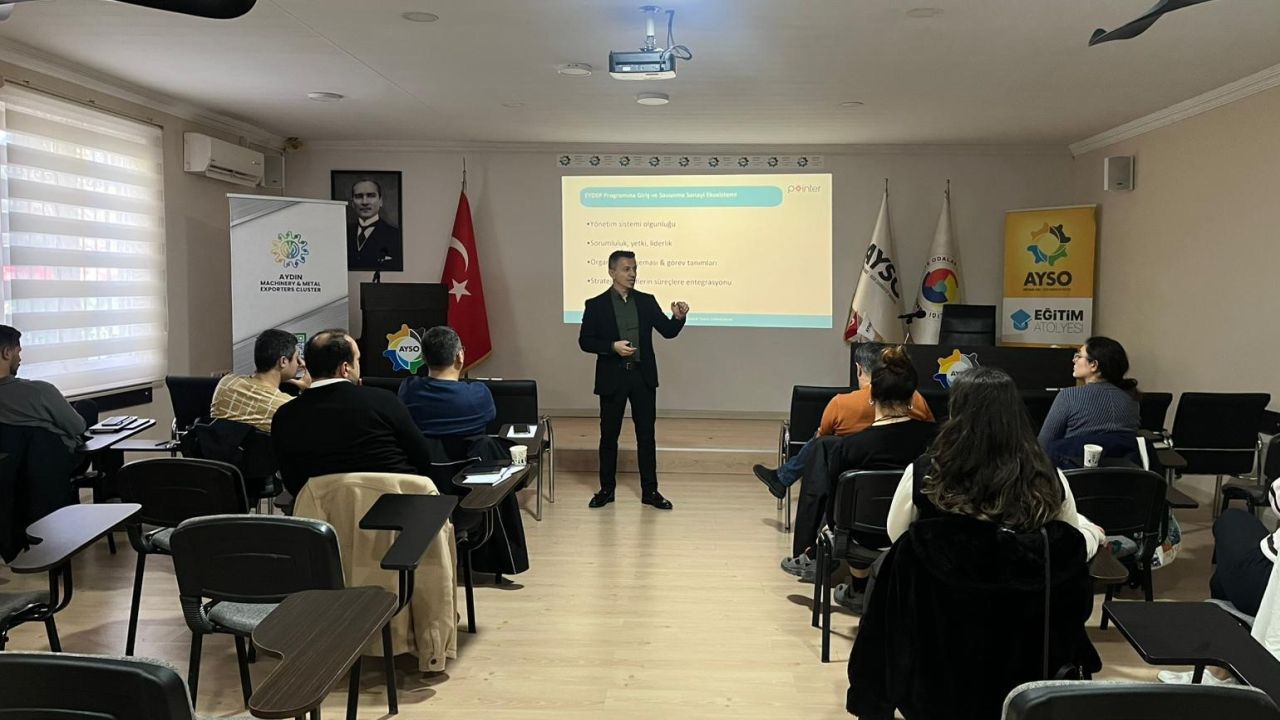 Eğitim, Dokuz Eylül Üniversitesi Öğretim Görevlisi ve Pointer Danışmanlık eğitmeni Murat Güney tarafından verildi. Güney, EYDEP (Endüstriyel Yetkinlik Değerlendirme ve Destekleme Programı)’in amacı, kapsamı ve savunma sanayii ekosistemindeki rolü hakkında kapsamlı bilgiler aktardı. Katılımcılara, firmaların EYDEP denetim sürecine nasıl hazırlanabilecekleri, kurumsal yetkinliklerini hangi adımlarla geliştirebilecekleri ve bu yetkinliklerin nasıl belgelendirileceği örnek uygulamalar üzerinden anlatıldı.
