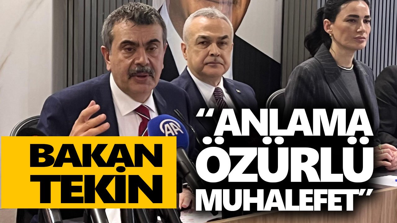 Muhalefetin söylemlerini eleştiren Tekin, “Başka bir öğretmen İnşallah Cumhuriyet’in 100.yılında çocuklar tuvalet ihtiyaçlarını gidermek için okulun dışına çıkmazlar. Ben bunu söylüyorum, anlama özürlü muhalefet şöyle anlıyor; Sanki o gün bütün okullarımızda tuvalet yok diyoruz diye anlıyor. Ben öyle mi diyorum arkadaşlar, ben başka bir şey söylüyorum. O gün bir mektup gelmiş, öğretmenlerimiz bunlardan bahsediyorlar. Peki bugün bizim projelerimize baktığınız da bizim okul projelerimiz gerçekten 5 yıldızlı otel standardında. İnşaat, işçilik, malzeme kalitesi, proje organizasyonu açısından dört dörtlük” dedi.