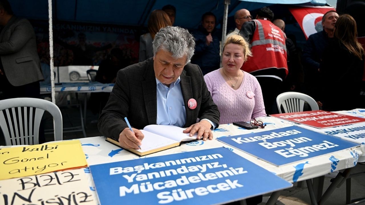 Kuşadası’nda Başkan Ömer Günel için İsmail Cem Dostluk ve Barış Meydanı’nda kurulan ‘Adalet ve Dayanışma’ çadırına destek ziyaretleri sürüyor. Cumhuriyet Halk Partisi’nin eski İzmir Milletvekili, gazeteci ve yazar Mustafa Balbay, çadırı ziyaret ederek hem Başkan Günel’e hem de eşine geçmiş olsun dileklerini iletti.