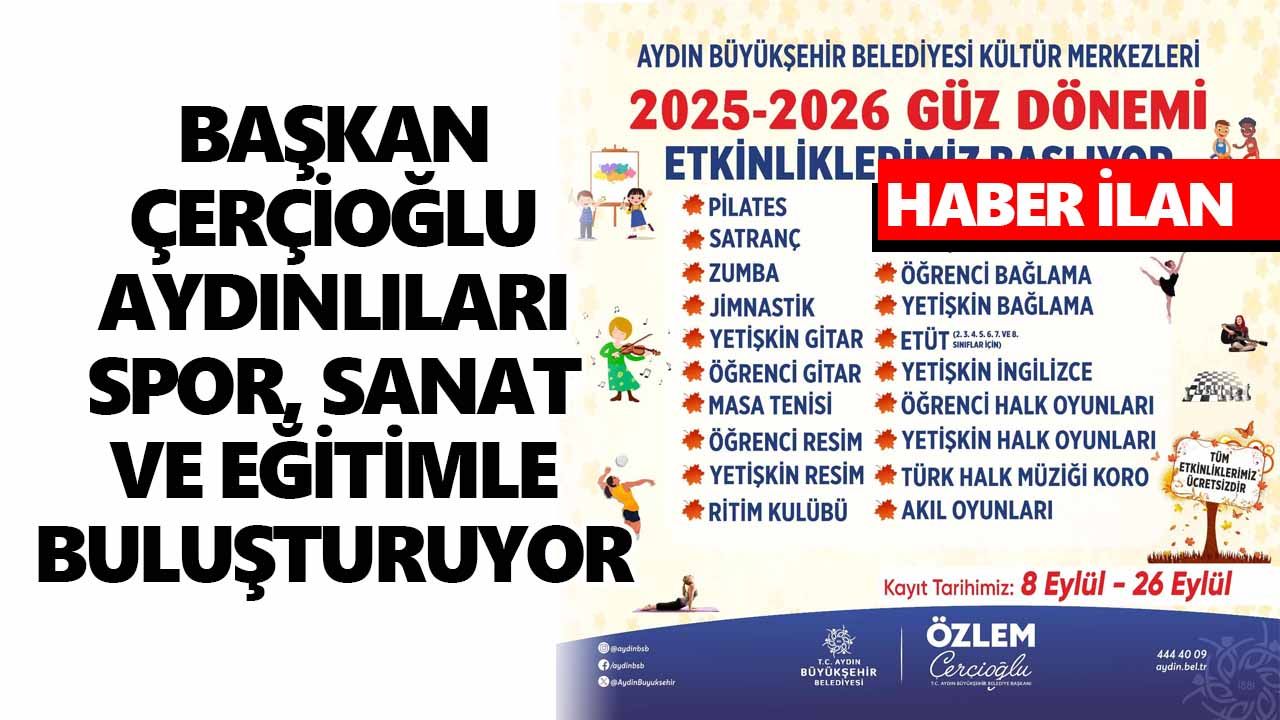 26 Eylül’e kadar kayıt olunabilecek kurslar hakkında detaylı bilgiye ise www.aydin.bel.tr adresinden ulaşmak mümkün.