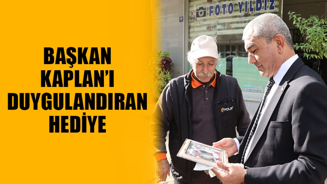 Elinde poşet ile Başkan Kaplan’ın yanına gelen Fotoğrafçı Faruk Yıldız poşeti Kaplan’a uzatarak bugünün hediyesi olsun dedi. Hediyenin ne olduğu ilk olarak anlamayan Başkan Kaplan, poşetin içerisindeki çerçeveyi çıkartınca çerçeve içerisinde anne ve babasının yıllar önce çekilmiş olan fotoğrafını gördü.