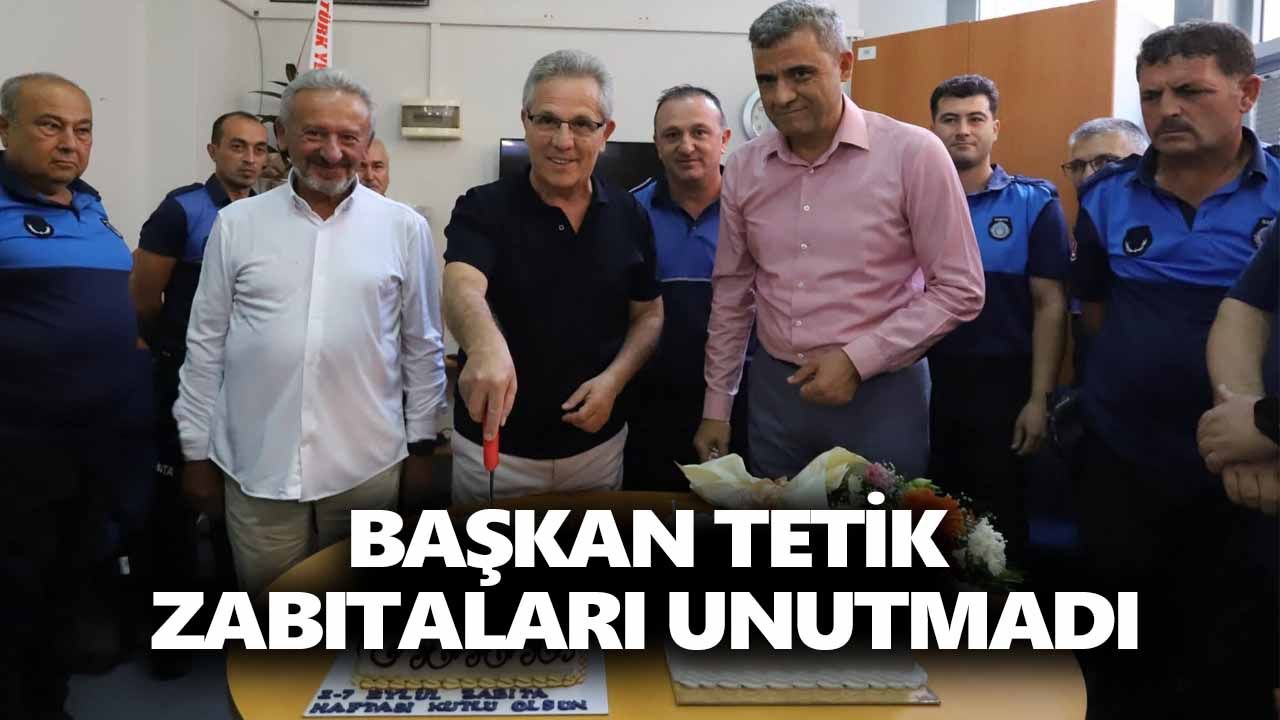 Personelle birlikte pasta kesen Başkan Tetik sosyal medya hesabından yaptığı paylaşımda "Zabıta Haftası kapsamında belediyemizin özveriyle görev yapan zabıta ekiplerini ziyaret ettim. Şehrimizde huzur ve düzenin sağlanması için gece gündüz demeden çalışan tüm mesai arkadaşlarıma gönülden teşekkür ediyorum" ifadelerini kullandı.