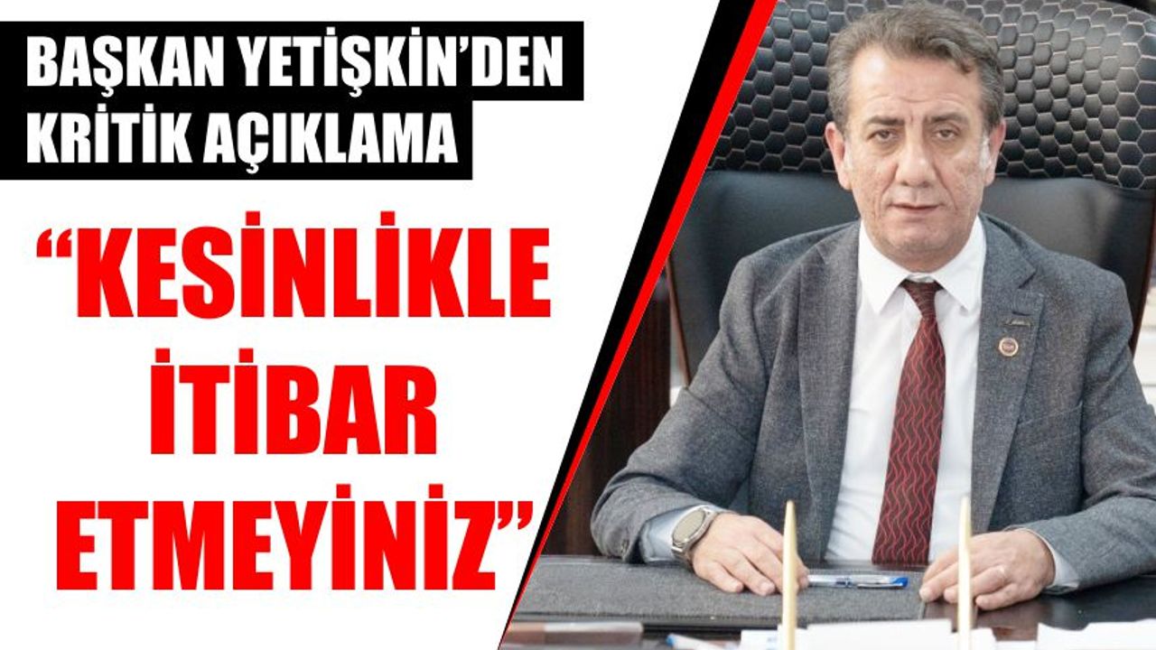 Başkan Yetişkin, sosyal medya ve kısa mesaj yoluyla kendisi adına yapılan para talebi veya benzeri isteklere kesinlikle itibar edilmemesini istedi. “Hiçbir belediye başkanı vatandaşlardan böyle yöntemlerle para talep etmez” diyen Yetişkin, vatandaşları dikkatli olmaya çağırdı.
