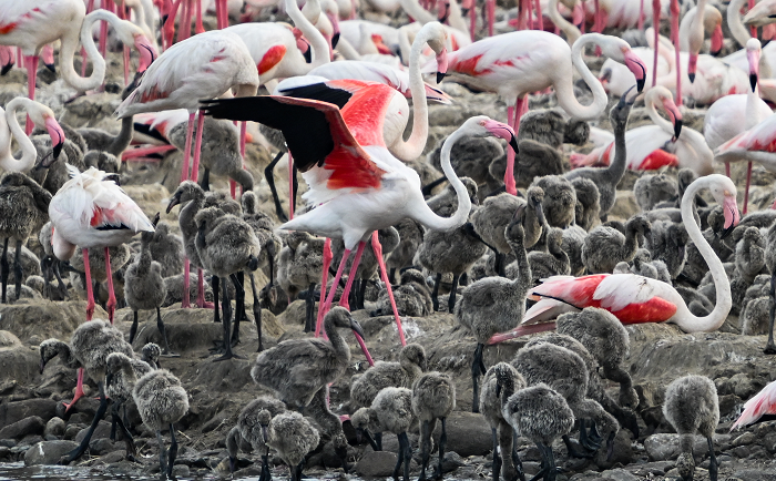 "Mayıs ayında dünyaya gelen yavru flamingolar, haziran ve temmuz aylarında adanın yanındaki suda ebeveynleri tarafından beslenirler, ağustos ayında da uçma denemeleri yapmaya başlarlar. Bu sene yapay flamingo adasının tamamında 16 bin ile 18 bin arasında flamingonun yumurtadan çıktığına ve hayata tutunduğuna şahit olduk. Biz bu alanı üreme dönemi gelmeden evvel ekibimizle rehabilitasyon çalışmaları yapıyoruz ayrıca adanın etrafında oluşturduğumuz ahşap çitlerle flamingoları yaban hayvanlarına karşı koruyoruz." (AA)