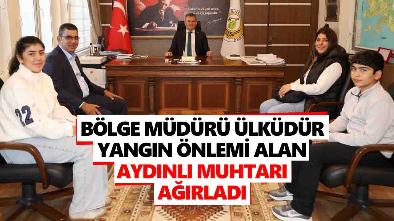 Muğla Orman Bölge Müdürü Mustafa Ülküdür geçtiğimiz yaz kendi imkanlarıyla orman yangınına karşı önlem alarak farkındalık yaratan Karacasu'ya bağlı Bahçeköy Muhtarı Öznur İnan ve ailesini makamında ağırladı.