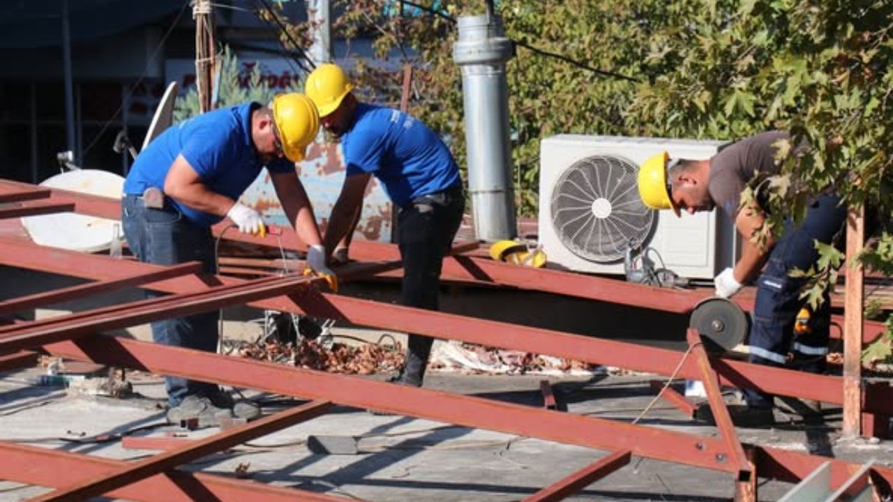 Kış aylarında yağışların artmasıyla oluşabilecek olumsuzlukları önlemeyi amaçlayan belediye ekipleri, kütüphane binasının çatısını tamamen kapatarak yapıyı koruma altına aldı.