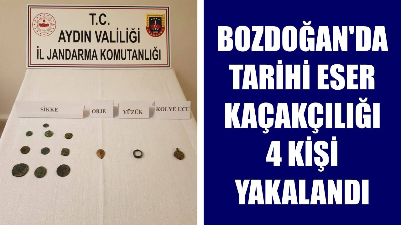 Aydın’da jandarma ekiplerinin tarihi eser kaçakçılığına yönelik sürdürdüğü operasyonlar kararlılıkla devam ediyor. Bu kapsamda İl Jandarma Komutanlığı KOM Şube Müdürlüğü ve Bozdoğan İlçe Jandarma Komutanlığı ekipleri tarafından Kızıltepe Mahallesi’nde kaçak kazı yaparak elde ettikleri eserleri satmaya çalışan 4 kişiyi yakaladı. Yapılan aramalarda bronz sikke, tarihi objelere el konuldu. Olayda yakalanan 4 şüpheli gözaltına alınarak haklarında adli işlem başlatıldı.