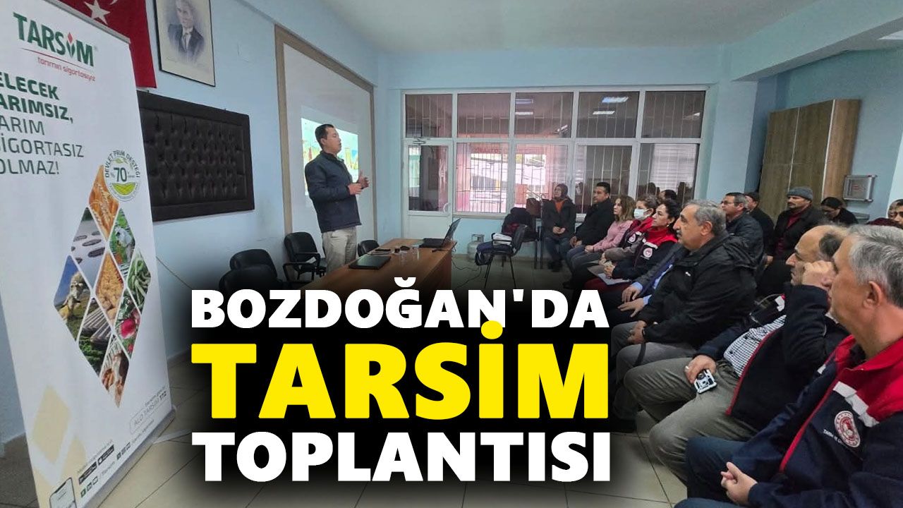 Tarım Sigortaları Havuzu (TARSİM) kapsamında, düzenlenen bilgilendirme toplantısına Koordinasyon Şube Müdürü Mutlu Aktaş, Bozdoğan Tarım ve Orman İlçe Müdür Vekili Hatice Akyol Bozdoğan Ziraat Odası Başkanı Kemal Özcan, İl ve İlçe Müdürlüğü teknik personeli, Ziraat Odası personeli, muhtarlar ve üreticiler katıldı. Toplantıda Denizli TARSİM Bölge Müdürlüğünde görevli Mustafa Dönmez , tarım sigortalarının kapsamı ve sağladığı avantajlar hakkında sunum gerçekleştirmesinin ardından üreticilerden gelen soruları yanıtladı.
