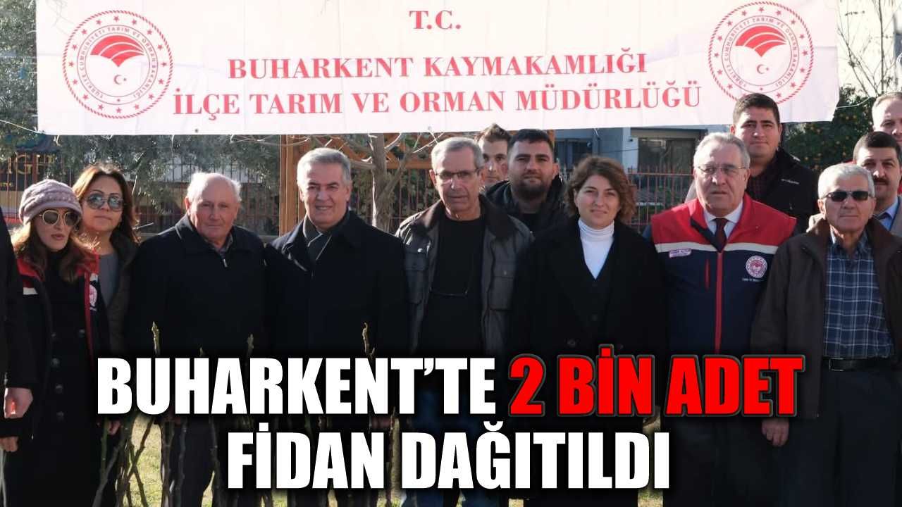 Bin adet kestane ve bin adet sarı lop incir fidanının dağıtım törenine Buharkent Belediye Başkanı Mehmet Erol, Buharkent İlçe Tarım ve Orman Müdürü Soner Altun, Buharkent Ziraat Odası Başkanı Naim Özdamar ile protokol üyeleri ve üreticiler katıldı.