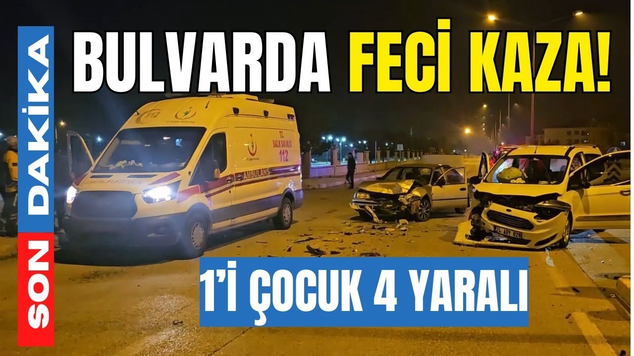 Erzincan’da hafif ticari araç ile otomobilin çarpışması sonucu 1’i çocuk 4 kişi yaralandı.