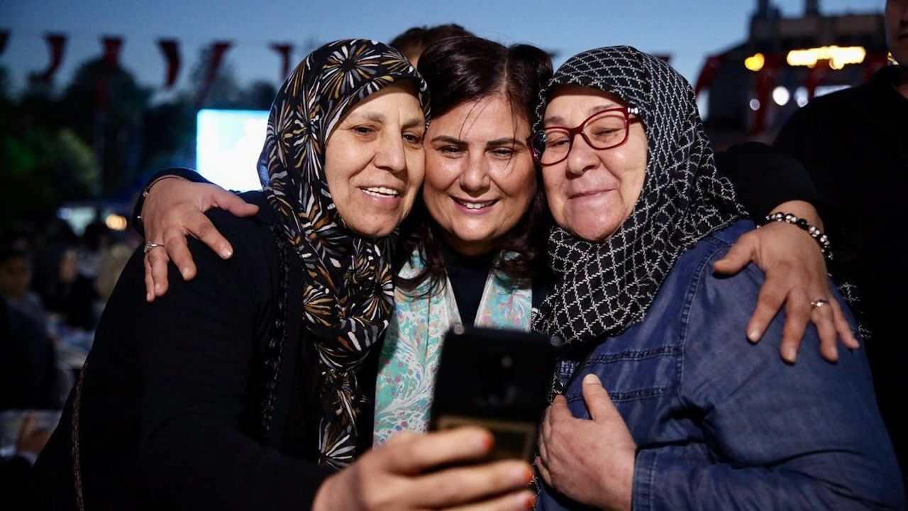 Vatandaşlarla birlikte iftar yapan Başkan Çerçioğlu, “Allah birlik ve beraberliğimizi bozmasın” dedi. Ramazan ayı boyunca her akşam Atatürk Kent Meydanı’nda iftar yemeği veren Aydın Büyükşehir Belediyesi’nin bu etkinliğine vatandaşlar yoğun ilgi gösteriyor. Büyükşehir Belediye Başkanı Özlem Çerçioğlu da meydandaki iftara katılarak, Millet İttifakı mensubu siyasi partilerin il başkanlarıyla vatandaşlara yemek dağıttı.