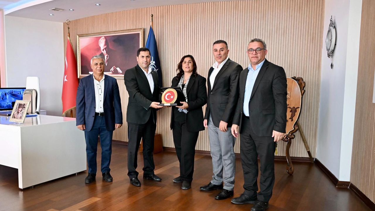 Aydın Büyükşehir Belediye Başkanı Özlem Çerçioğlu’na, YİKOB İdari ve Mali İşler Müdürü, BEM-BİR-SEN Aydın İl Başkanı Ali Aygül ile BEM-BİR-SEN İl Başkan Yardımcıları Mahmut Akgül, Mansur Kaner ve Şahap Uğur Özvardar nezaket ziyaretinde bulundu.