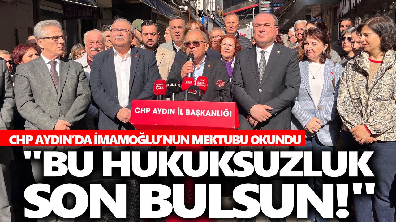 CHP Aydın İl Örgütü, tutuklu Cumhurbaşkanı Adayı Ekrem İmamoğlu’nun kaleme aldığı mektubu İl Başkanlığı binası önünde düzenlenen programda kamuoyuyla paylaştı. Türkiye genelinde 81 ilde eş zamanlı gerçekleştirilen etkinlik kapsamında Aydın’da da partililer bir araya geldi.