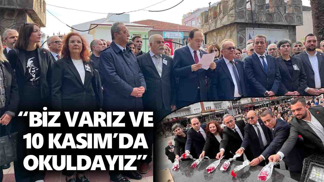 “Bugün burada bir ulusun yeniden doğuşuna önderlik etmiş Gazi Mustafa Kemal Atatürk’ü anmak için bir aradayız. 10 Kasım yalnızca bir anma günü değil; Atatürk’ün düşüncelerini ve devrimlerini geleceğe taşıma, mirasına sahip çıkma günüdür. Ancak Milli Eğitim Bakanlığı 2024 ve 2025 yıllarında 10 Kasım’ı içine alan haftayı ara tatil olarak belirledi. Bu bir tesadüf değildir, planlı bir görmezden gelme çabasıdır.”