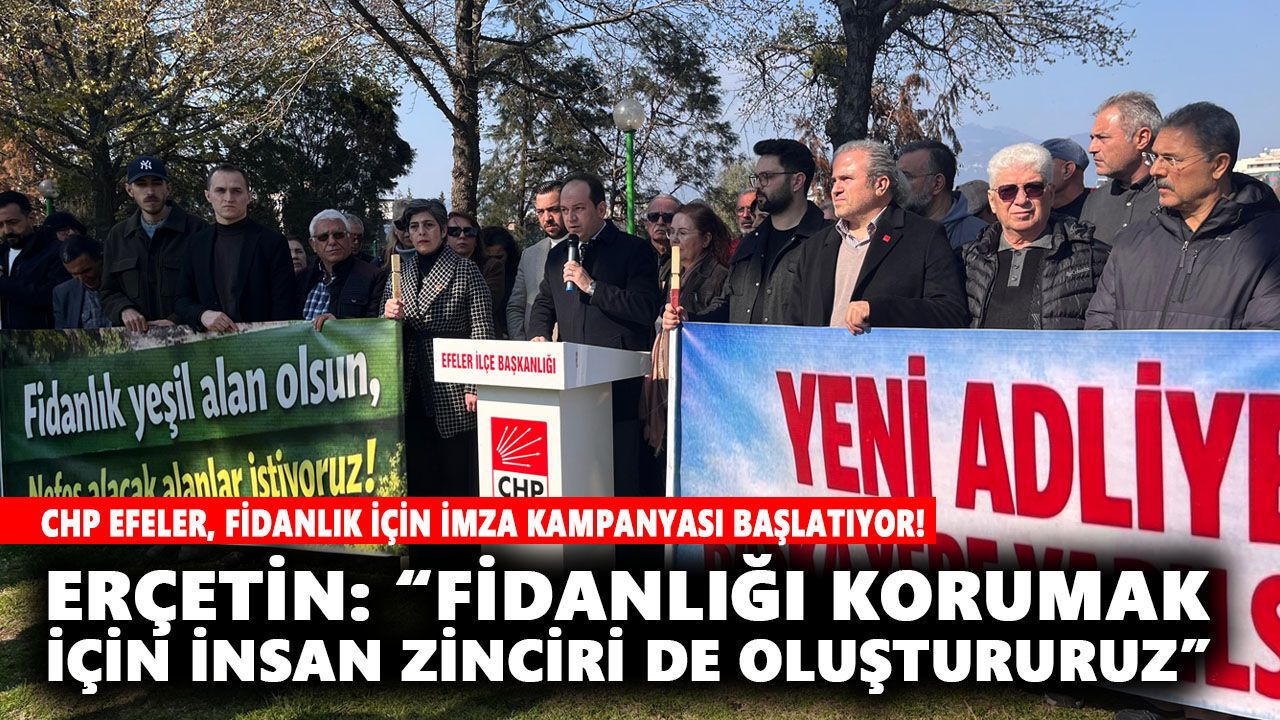 Cumhuriyet Halk Partisi (CHP) Efeler İlçe Başkanlığı, Aydın Adliye Sarayı’nın Orman Fidanlığı arazisine yapılması kararına tepki göstermek amacıyla fidanlık önünde basın açıklaması düzenledi. Fidanlığın yanındaki Yaşar Kemal Parkı’ndaki açıklamada konuşan CHP Efeler İlçe Başkanı Kaan Erçetin, söz konusu alanın korunması için mücadelelerini sürdüreceklerini belirterek imza kampanyası başlatacaklarını duyurdu.