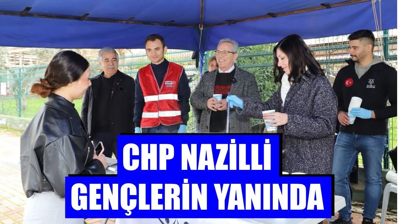 Cumhuriyet Halk Partisi (CHP) Nazilli İlçe Başkanlığı İsabeyli Kampüsü'nde sınav dönemlerinde öğrencilere çorba ikramında bulunmayı sürdürüyor. CHP'liler önceki sınav dönemlerinde olduğu gibi İsabeyli Kampüsü'ne giderek sabahın erken saatlerinde sınava girecek öğrencilere sıcak çorba ikramında bulundu. Etkinliğe Nazilli Belediye Başkanı Ertuğrul Tetik, CHP Nazilli İlçe Başkanı Aslıhan Ökmen, İl Başkan Yardımcıları Gülseren Şengül ve Sinan Kaya, İl Disiplin Kurulu Üyesi Ali Yıldırım, İlçe Yöneticileri, İlçe Gençlik Kolları Başkanı Mustafa Kemal Koç ve yönetimi ile partililer katıldı. Etkinliği sosyal medyadan paylaşan Aslıhan Ökmen "Cumhuriyet Halk Partisi olarak sosyal belediyeciliği, dayanışmayı ve gençlerimizin geleceğine sahip çıkmayı her koşulda savunuyoruz. Bu anlayışı sahada emekle hayata geçiren Gençlik Kollarımıza yürekten teşekkür ediyor, tüm gençlerimize sınavlarında başarılar diliyorum" ifadelerini kullandı.