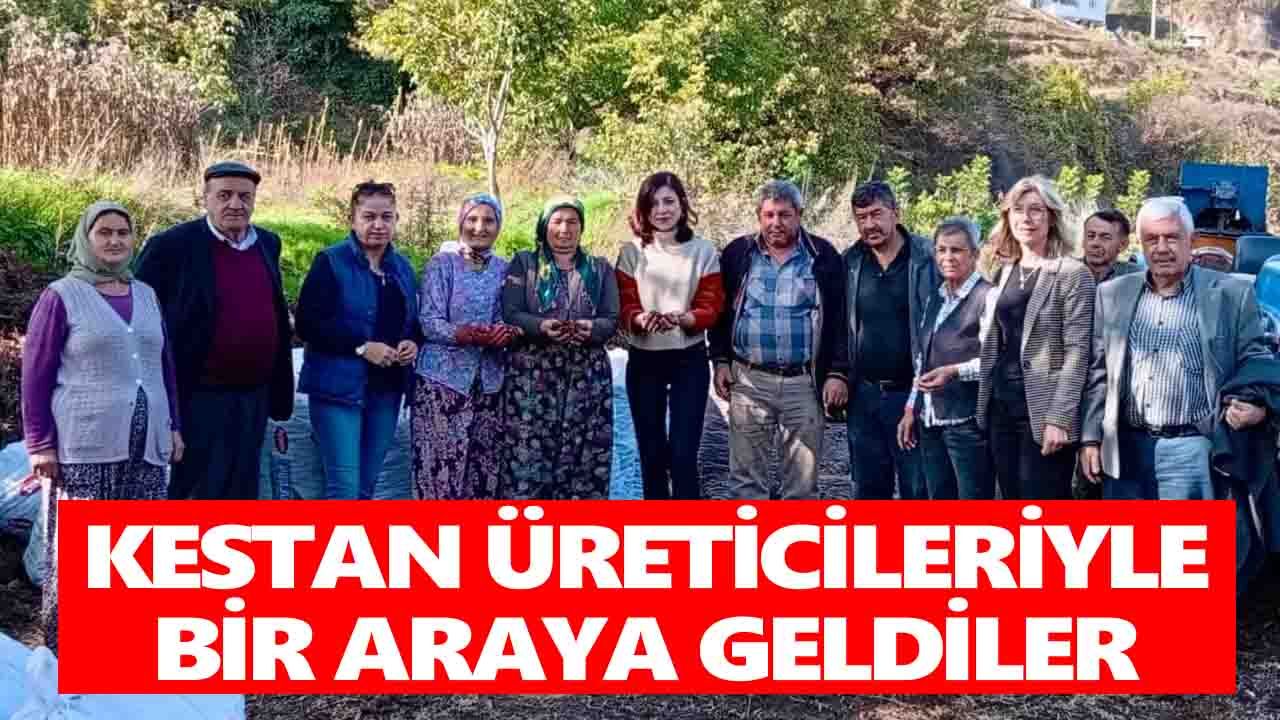 Mahalle Muhtarı Yaşar Korkmaz'ın da eşlik ettiği buluşmada kestane üreticilerin sorun ve talepleri konuşuldu. Kestane bahçesine giderek toplama sürecini yakından gözlemleyen CHP'li Aslıhan Ökmen kestanenin toplanmasının zahmetli ve üretim maliyetlerinin yüksek olmasına rağmen fiyatının iki yıldır değişmediğine dikkat çekti.