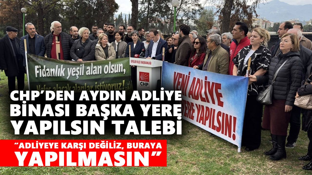 Cumhuriyet Halk Partisi (CHP) Efeler İlçe Başkanlığı, yeni adliye binasının mevcut fidanlık alanına inşa edilmesine karşı çıkarak Yaşar Kemal Parkı’nda basın açıklaması yaptı. CHP Efeler İlçe Başkanı Kaan Erçetin, yaptığı açıklamada, adliye binası ihtiyacı olduğunu ancak seçilen alanın doğru olmadığını söyledi.