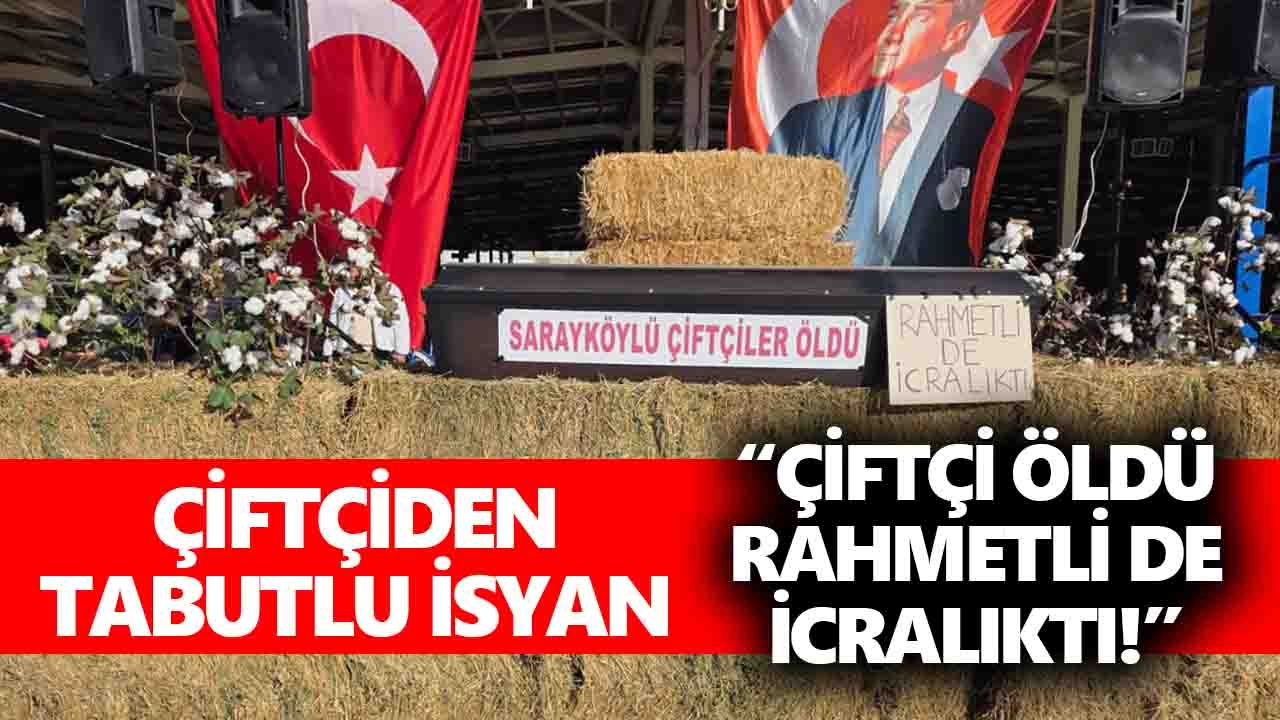 Denizli’nin Sarayköy ilçesinde çiftçiler, artan girdi maliyetlerine dikkat çekmek için temsili tabutlu bir protesto gerçekleştirdi. Sarayköy Kapalı Pazaryeri’nde Sarayköy Ziraat Odası Başkanlığı öncülüğünde düzenlenen basın açıklamasında üreticiler, “Toprak altın, cebimiz boş! Mazot 60 lira, çiftçi ayakta kalamıyor!” diyerek ses yükseltti. Üzerinde “Sarayköylü çiftçi öldü” yazılı temsili tabut ve “Rahmetli de icralıktı” ifadeli dövizler, çiftçilerin yaşadığı çıkmazı çarpıcı şekilde ortaya koydu.