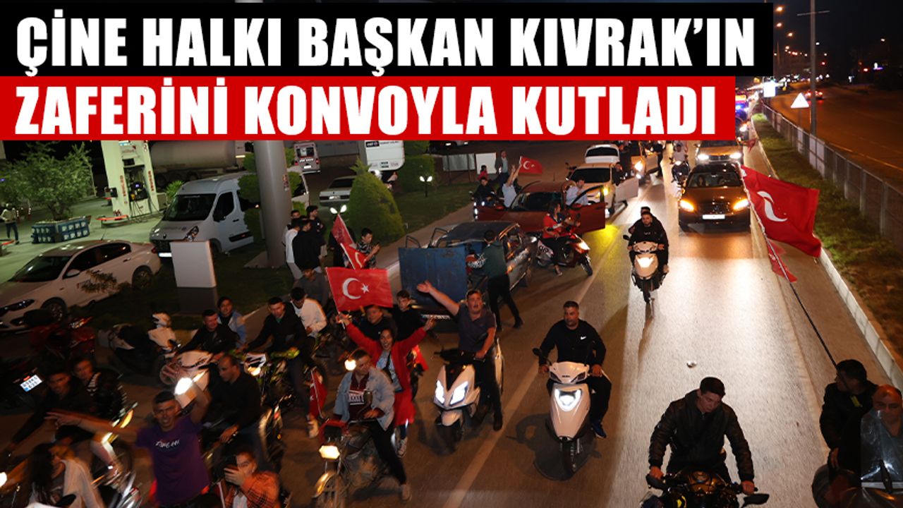 31 Mart gecesi belediye meydanına akın eden Çine halkı bu kez zafer konvoyunda buluştu. Çine’nin bir ucundan diğer bir ucuna kadar uzanan konvoya halk yoğun bir katılım gösterdi. Aracı olmayan Çineliler de evlerinin balkonlarından ve sokaklardan alkışlarıyla konvoya destek verdi. Türk Bayrakları ve Cumhuriyet Halk Partisi bayrakları ile donatılan araçlarla sokaklar edata düğün alanına dönüştü. Başkan Mehmet Kıvrak, CHP Çine İlçe Başkanı Tayfun Şahin, CHP İlçe Gençlik Kolları Başkanı Mehmet Çavdar ve partililerle birlikte zeybek oynadı. Hep bir ağızdan söylenen şarkı ve marşlarla da zafer büyük bir coşkuyla kutlandı.