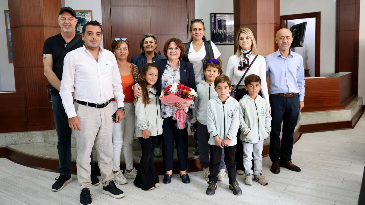 Türkiye Optimist Yarışları’nda Didim adına yarışan küçük yelkenciler, yöneticileri Hülya Keser Zayan, Suat Susincelioğlu ve Emekli Deniz Kurmay Albay Ali Saçan ile birlikte Didim Belediye Başkanı Hatice Gençay’ı makamında ziyaret etti. Minik sporcuların heyecanı ve başarıları, belediye binasında sıcak ve samimi bir atmosfer oluşturdu. Başkan Gençay, genç yelkencileri tek tek tebrik ederek Didim’in spor alanındaki her başarısının kendilerini gururlandırdığını dile getirdi. Ziyaret, sporun kentte taşıdığı değeri bir kez daha ortaya koydu.