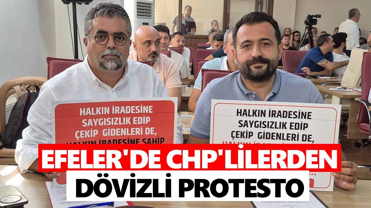 CHP Efeler Belediye Meclis üyeleri İbrahim Bozkurt ve Yusuf Metin Diler, Büyükşehir Belediye Başkanı Özlem Çerçioğlu'nun CHP'den istifa ederek AK Parti'ye geçişini döviz açarak protesto etti.
